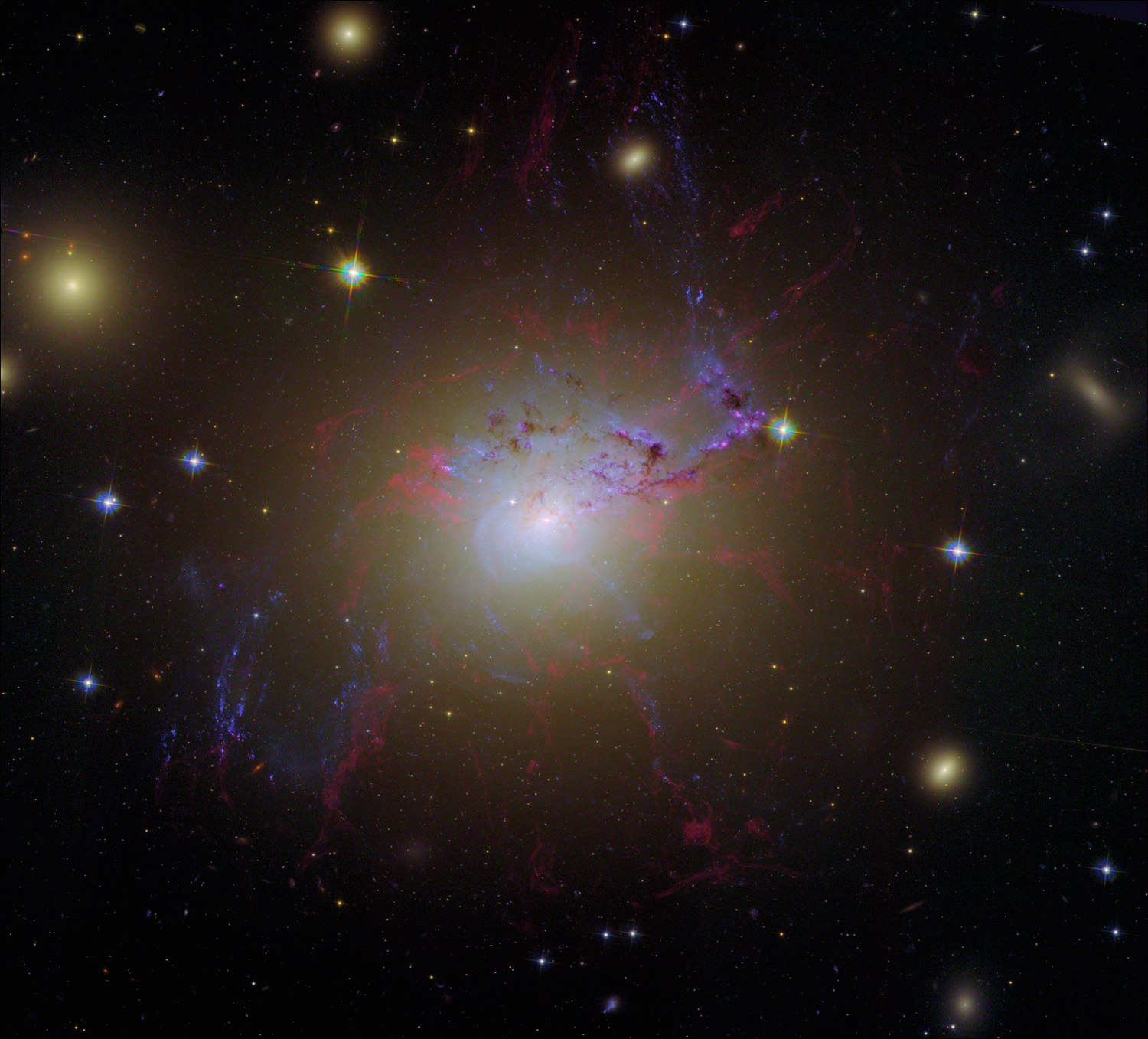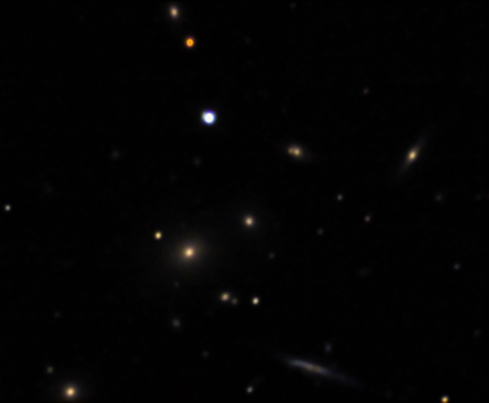 LRGB image of Abell Galaxy Cluster 1656 surrounding elliptical